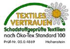 Unsere Standardprodukte werden regelmäßig nach ÖkoTex-Standard 100 auf Schadstoffe geprüft.